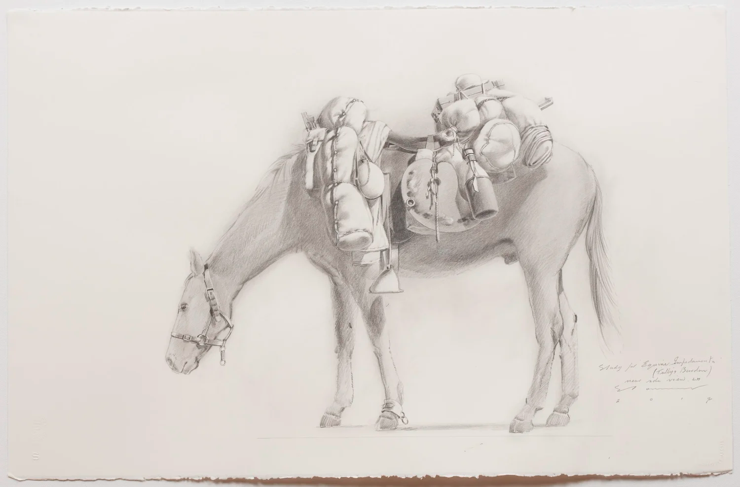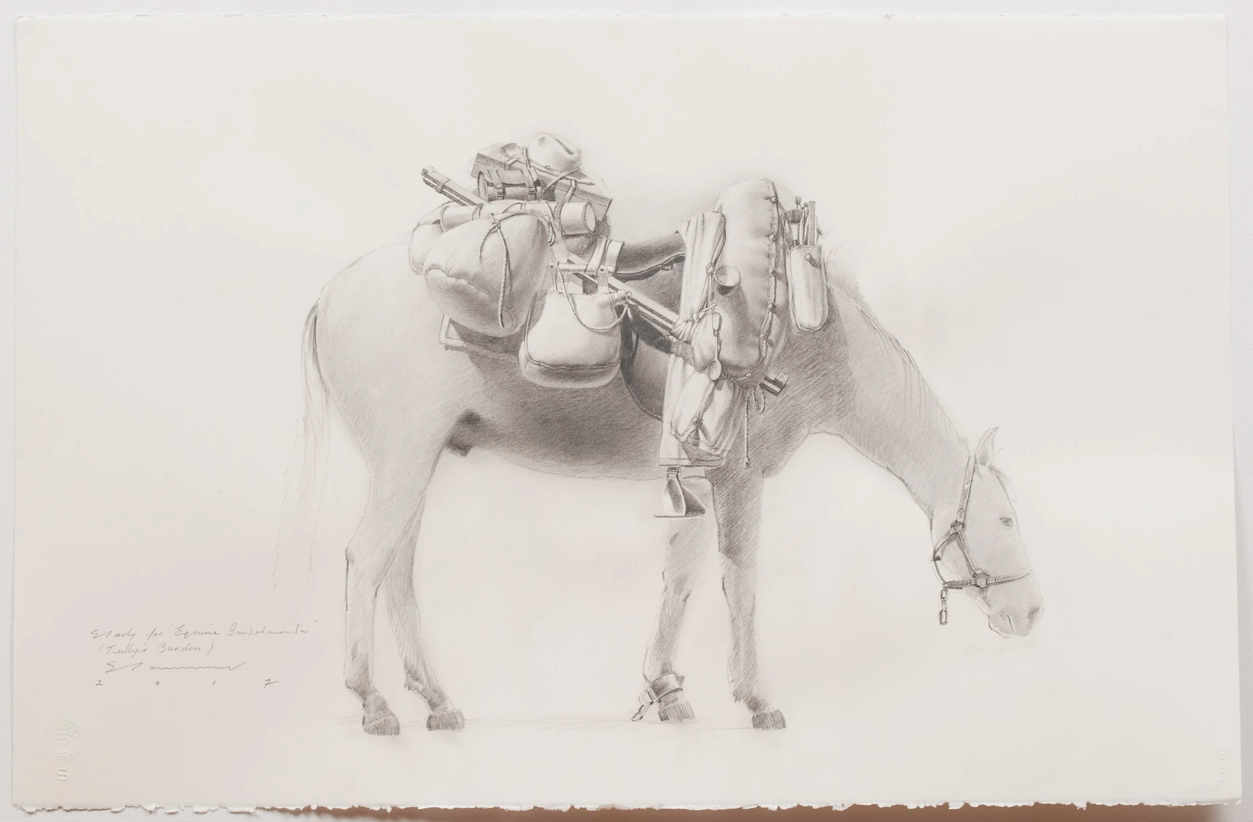 The Equine Impedimenta bronzes resulted from numerous studies, drawings and paintings. Collaboration with master sculptor Liao Shengxiang then led to the production of an initial maquette followed by the large statue and finally a life size work.