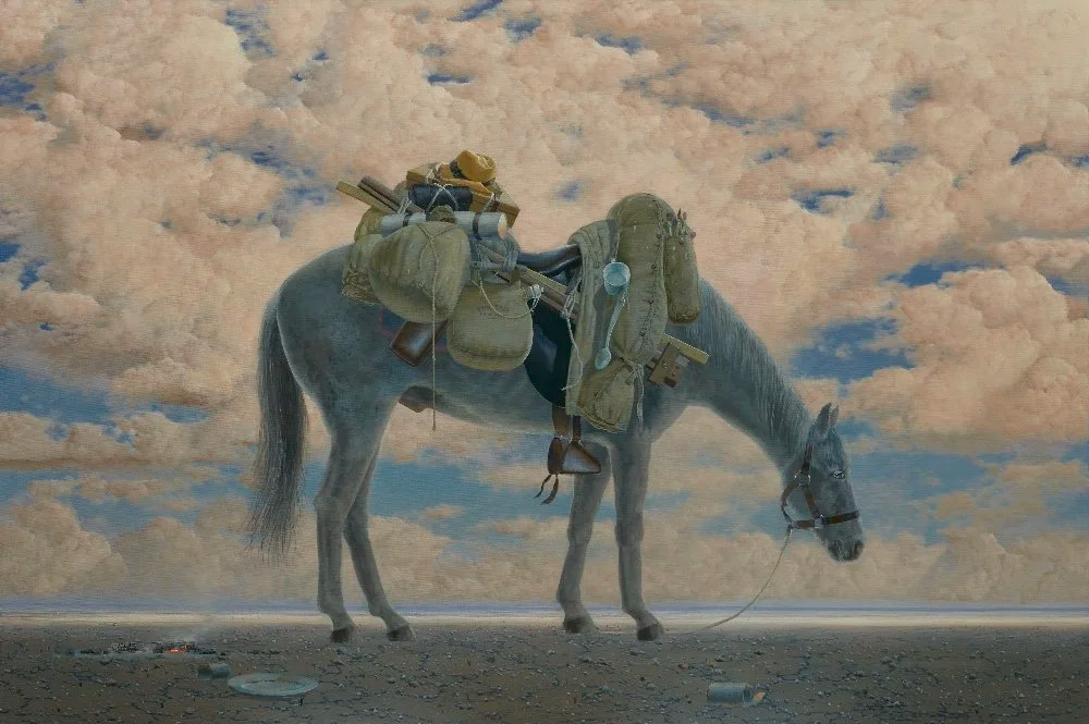 The Equine Impedimenta series followed The Impedimenta Series (a walking figure whose progress is impeded by the weight of a ludicrous amount of baggage). I started the process looking for an older mount with a gentle demeanour but I had no luck in my district as all the horses were equestrian poseurs. I then asked Gai Waterhouse if she could help.